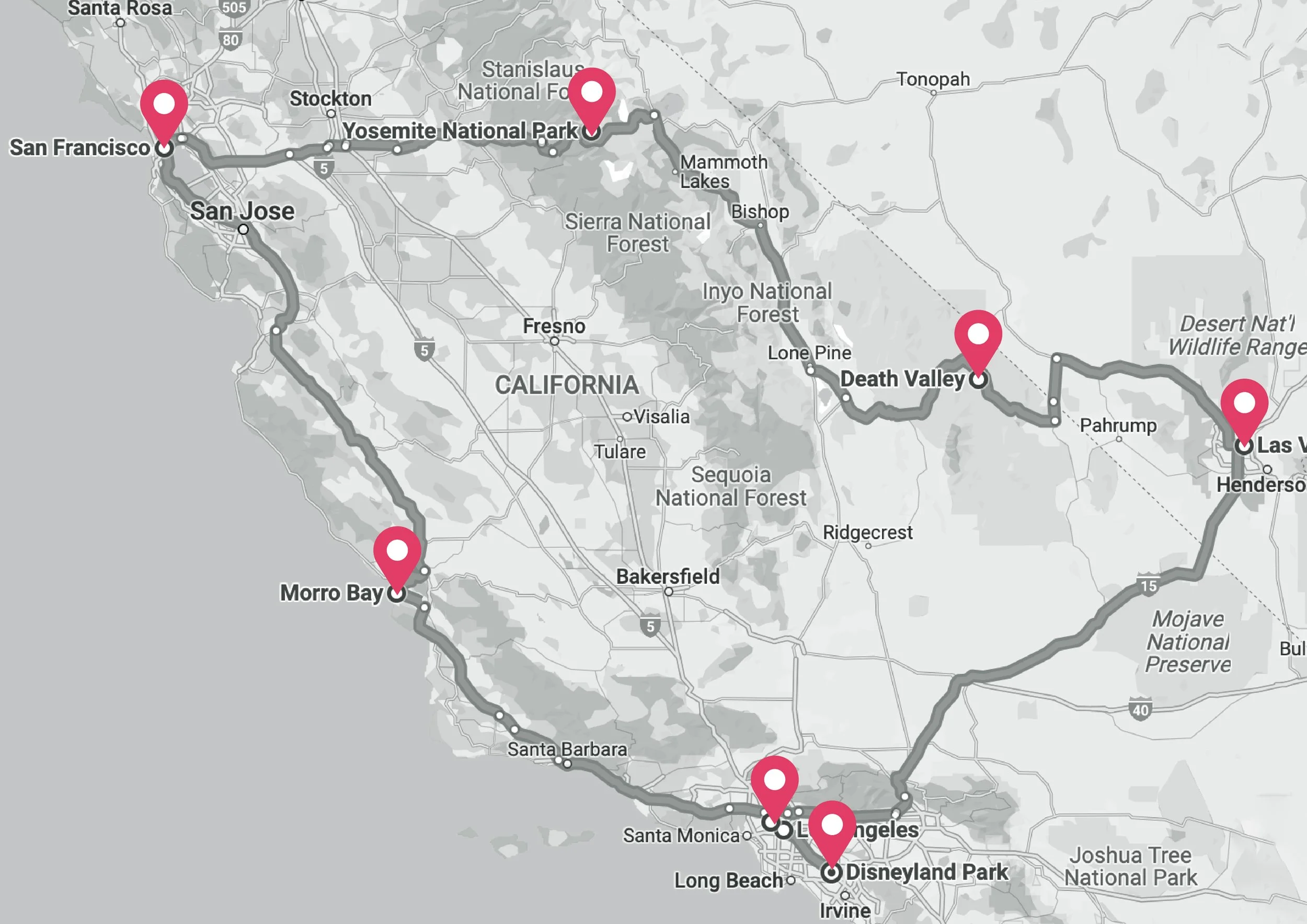 Si prosegue con i parchi, le sequoie dello Yosemite National Park, per cambiare subito ambiente e vedere il deserto della Death Valley, in queste tappe dormiremo nella natura grazie a speciali eco lodge e faremo esperienze paesaggistiche pazzesche, per poi riprendere la strada alla volta di Las Vegas. Potreste concedervi una serata di follie o fare tutte le montagne russe della città con i vostri figli, tanto il giorno dopo faremo uno stop and go in relax sulla Route 66 alla volta di LA, per ricaricarci e arrivare belli energici ai parchi di Hollywood e poi a Disneyland, dove sarà decisamente il momento dei bambini per sfrenarsi e concludere l’avventura in bellezza!